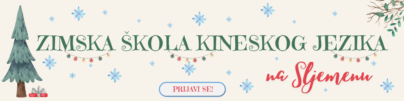 Zimska škola kineskog jezika održava se svake godine u zadnjem tjednu mjeseca prosinca. Zimska škola 2023. počinje 28. i završava 30. prosinca 2023. godine.